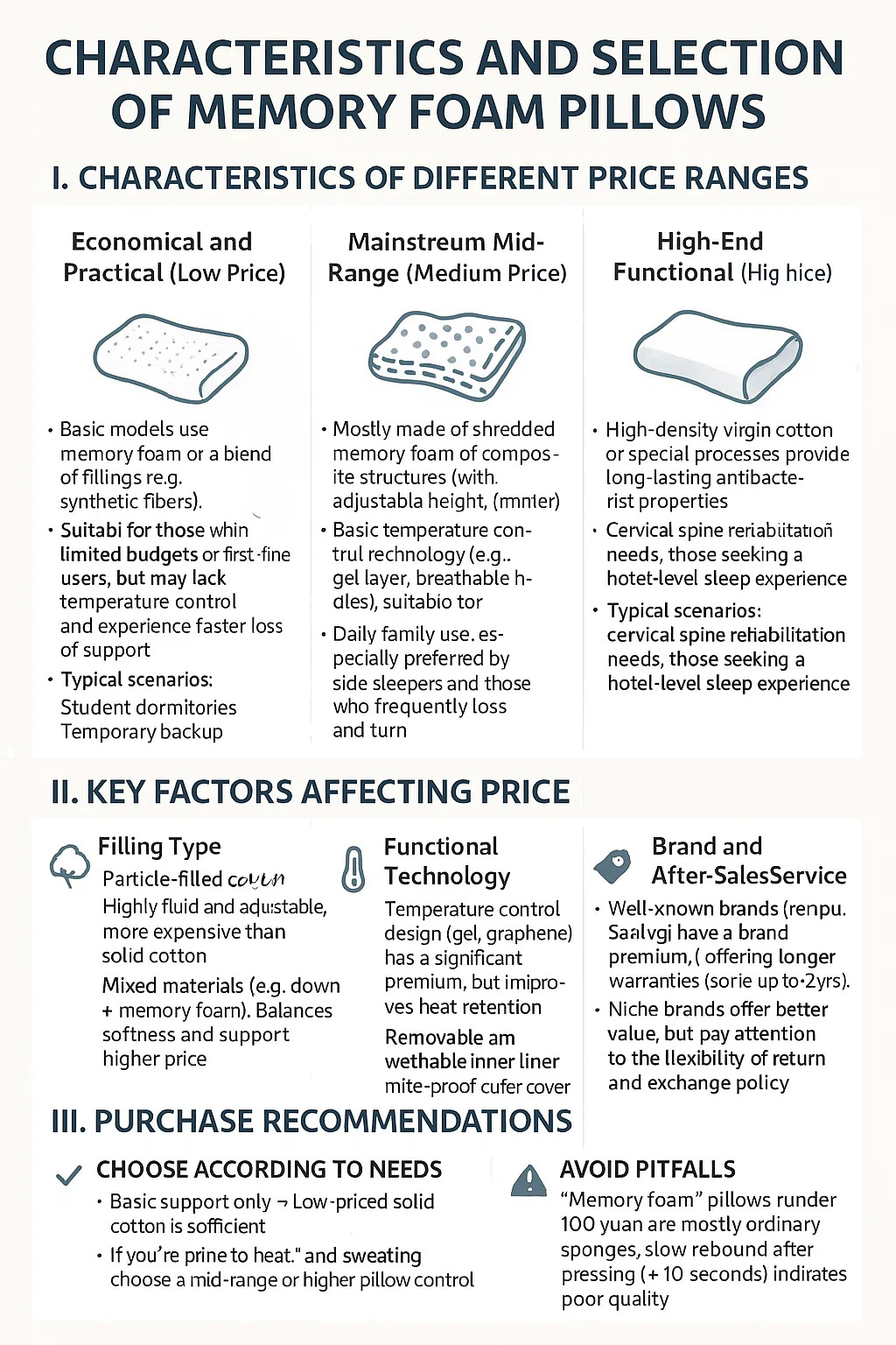 • Pernele „spumă cu memorie” sub 100 de yuani sunt în mare parte bureți obișnuiți; Rebound lent după apăsare (>10 secunde) indică o calitate slabă.