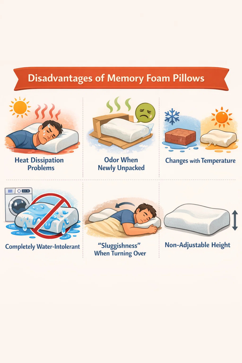 Deși perne din spumă cu memorie sunt renumite pentru confortul și susținerea gâtului, nu sunt perfecte. Pentru obiceiurile de dormit ale fiecărui individ, aceste perne au unele dezavantaje enervante.
