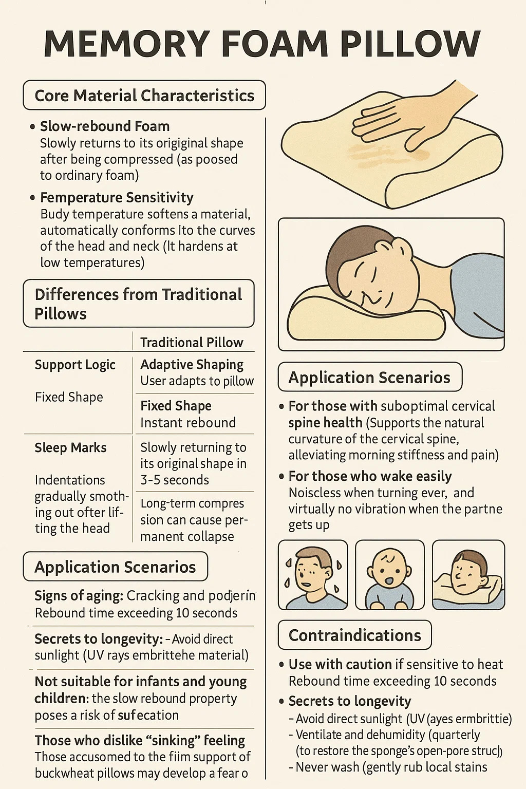 | Caracteristică | Pernă din spumă de memorie | Pernă tradițională (Polyfill / Down) |